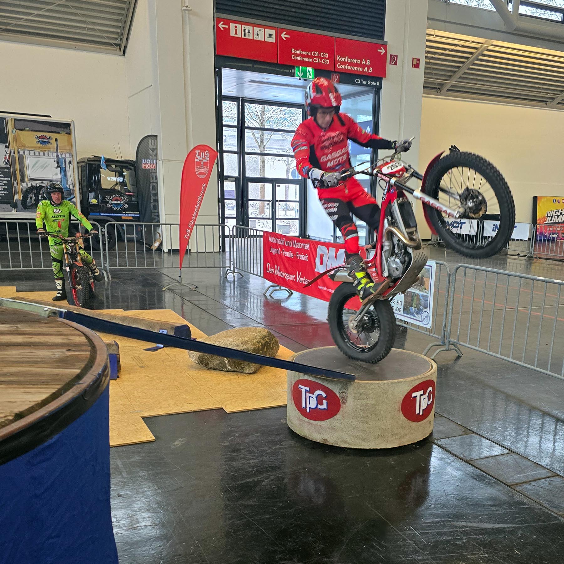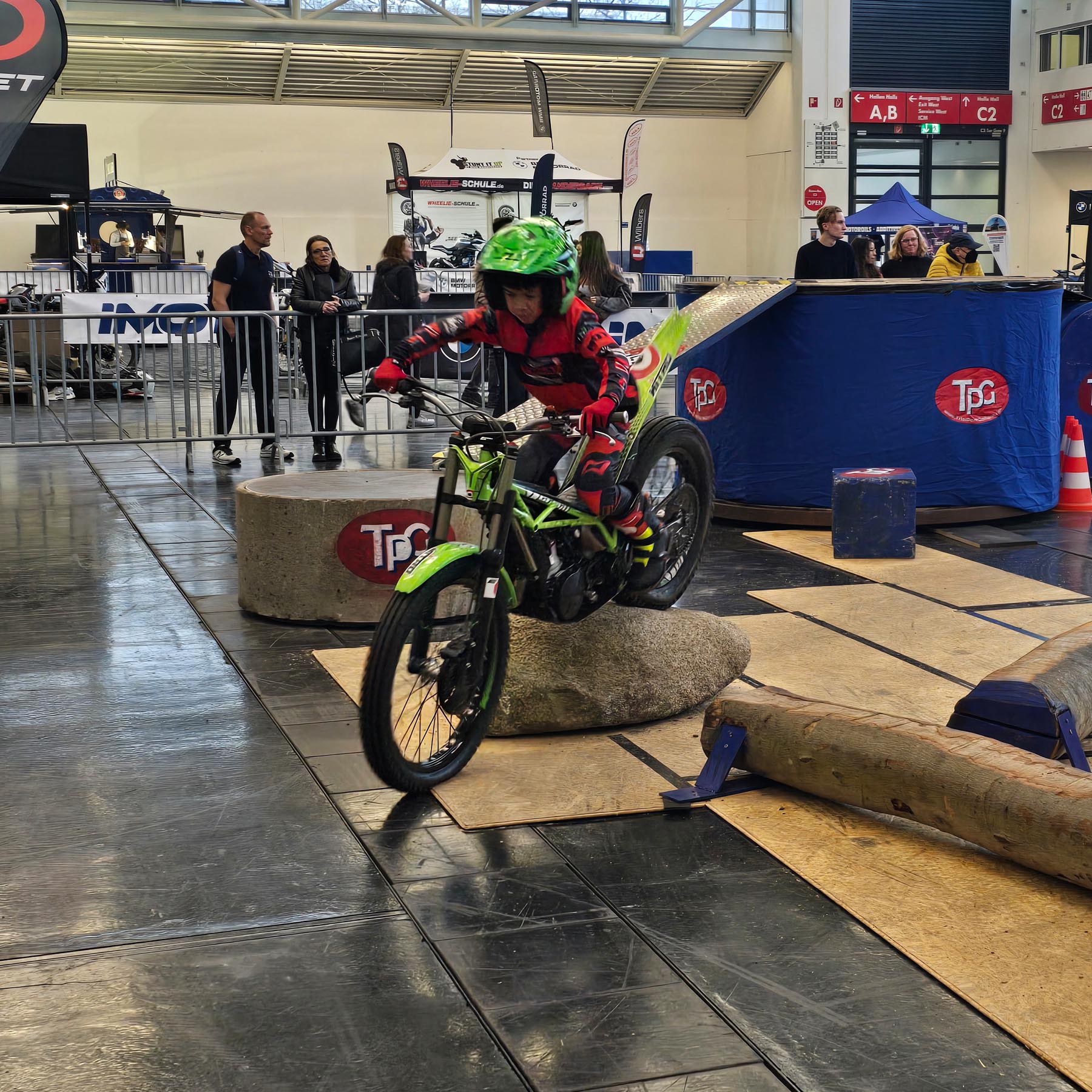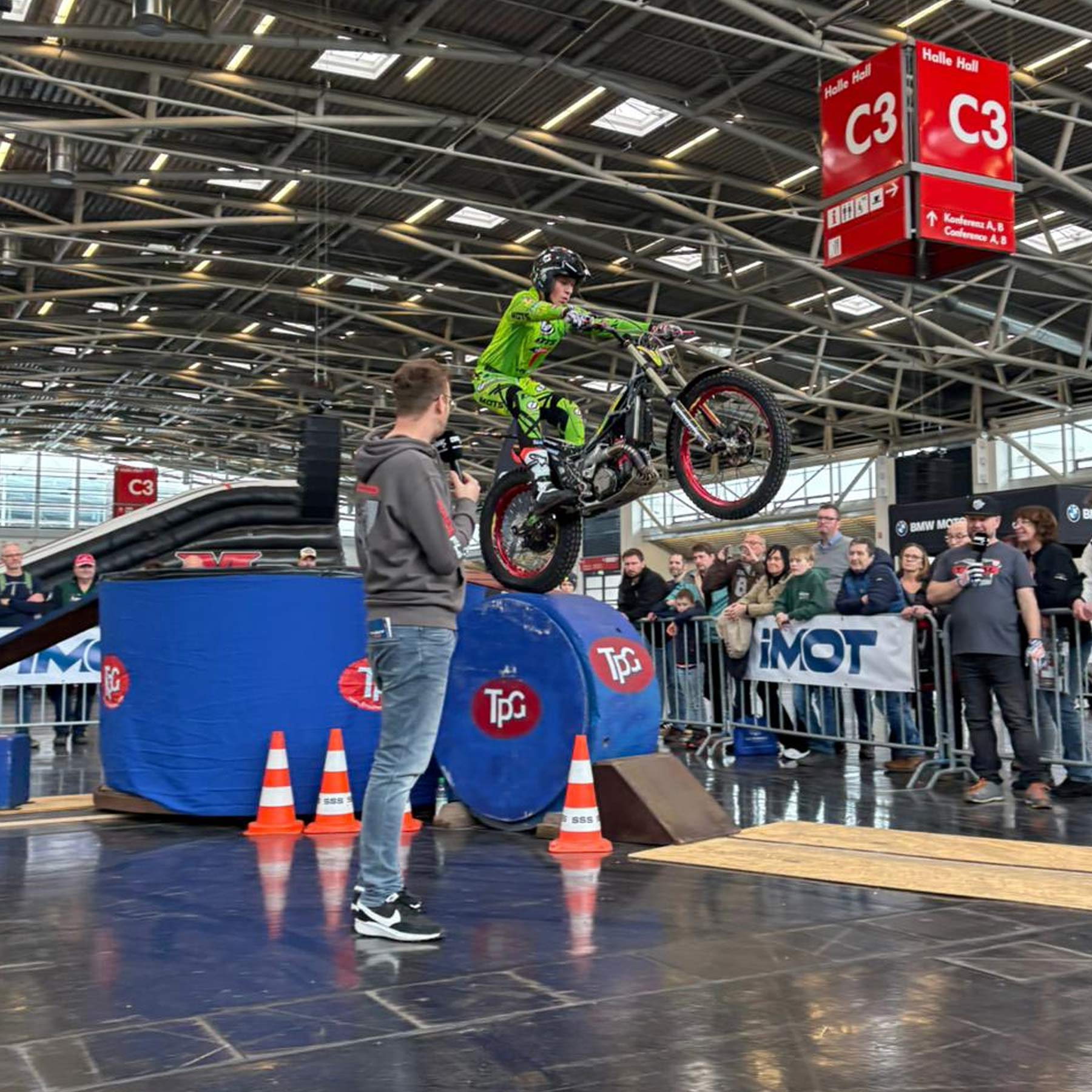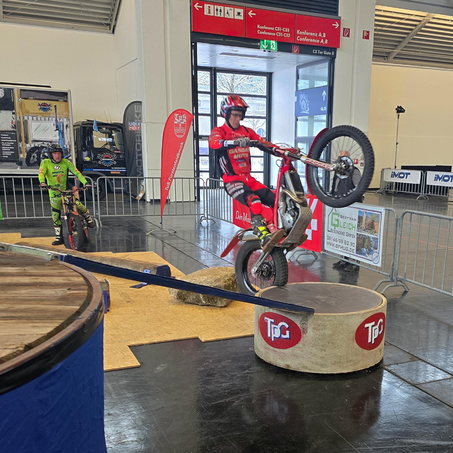 Am Wochenende sind wir jeden Tag in München auf der Motorradmesse IMOT in Riem. Neben Trialshows bieten wir für künftige Trialweltmeister Schnuppertrainigs an.