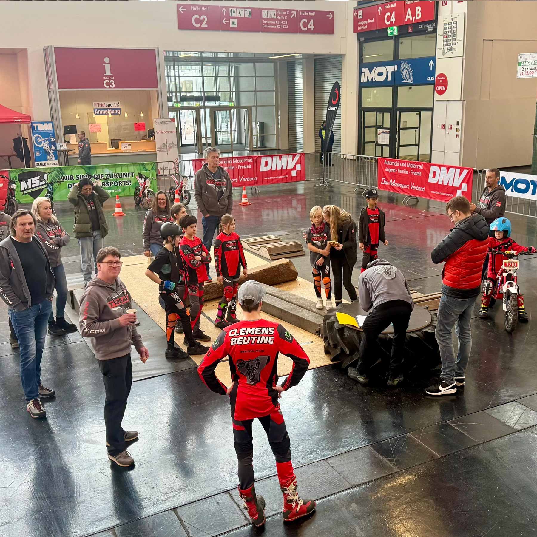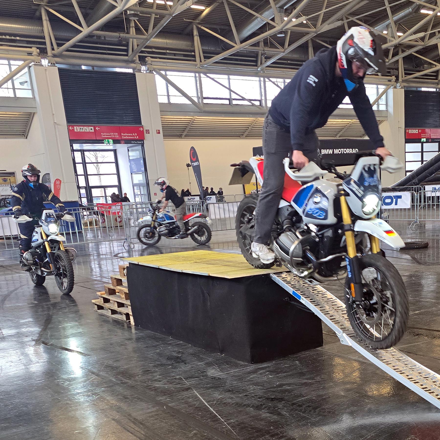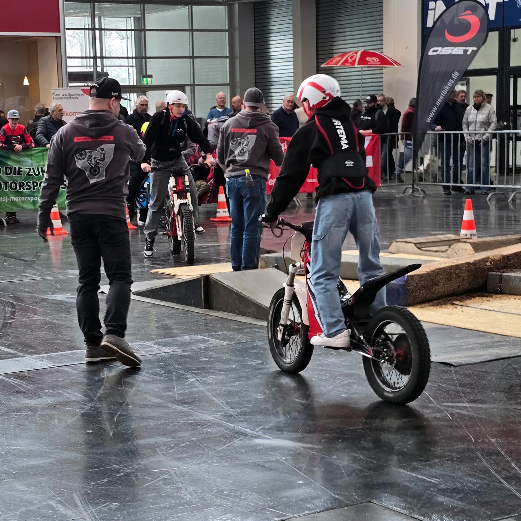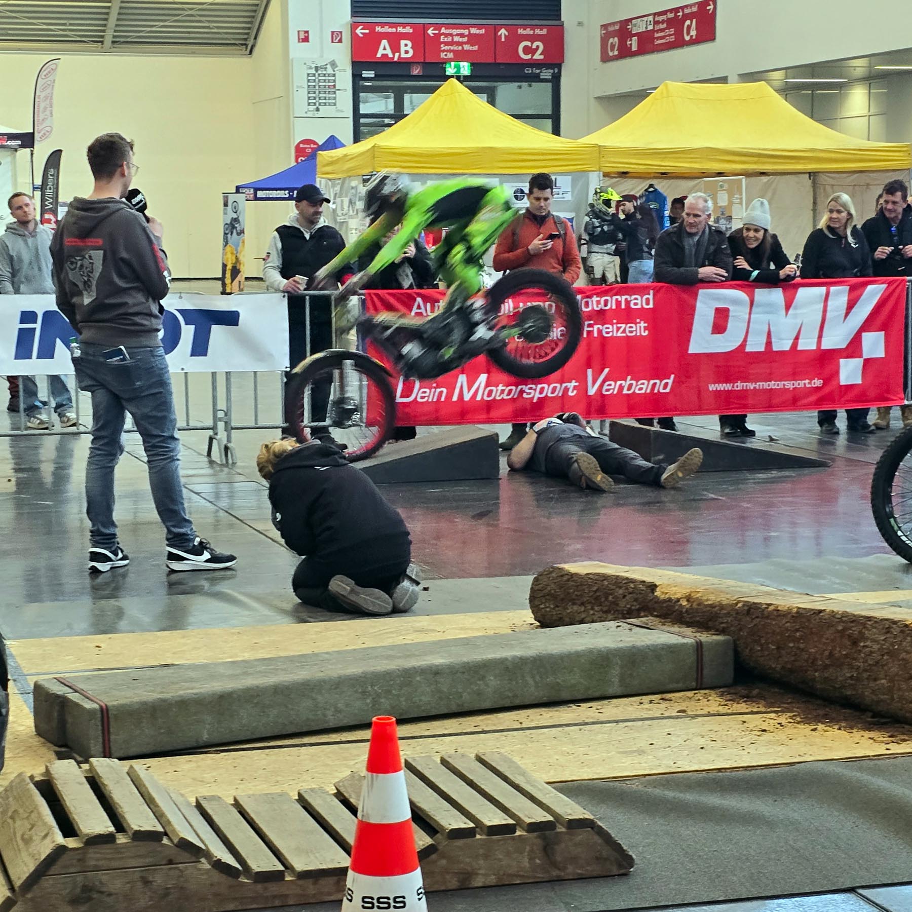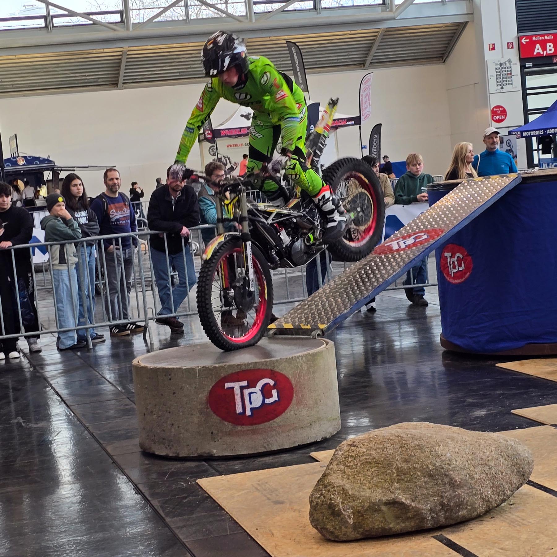 Am Wochenende sind wir jeden Tag in München auf der Motorradmesse IMOT in Riem. Neben Trialshows bieten wir für künftige Trialweltmeister Schnuppertrainigs an.