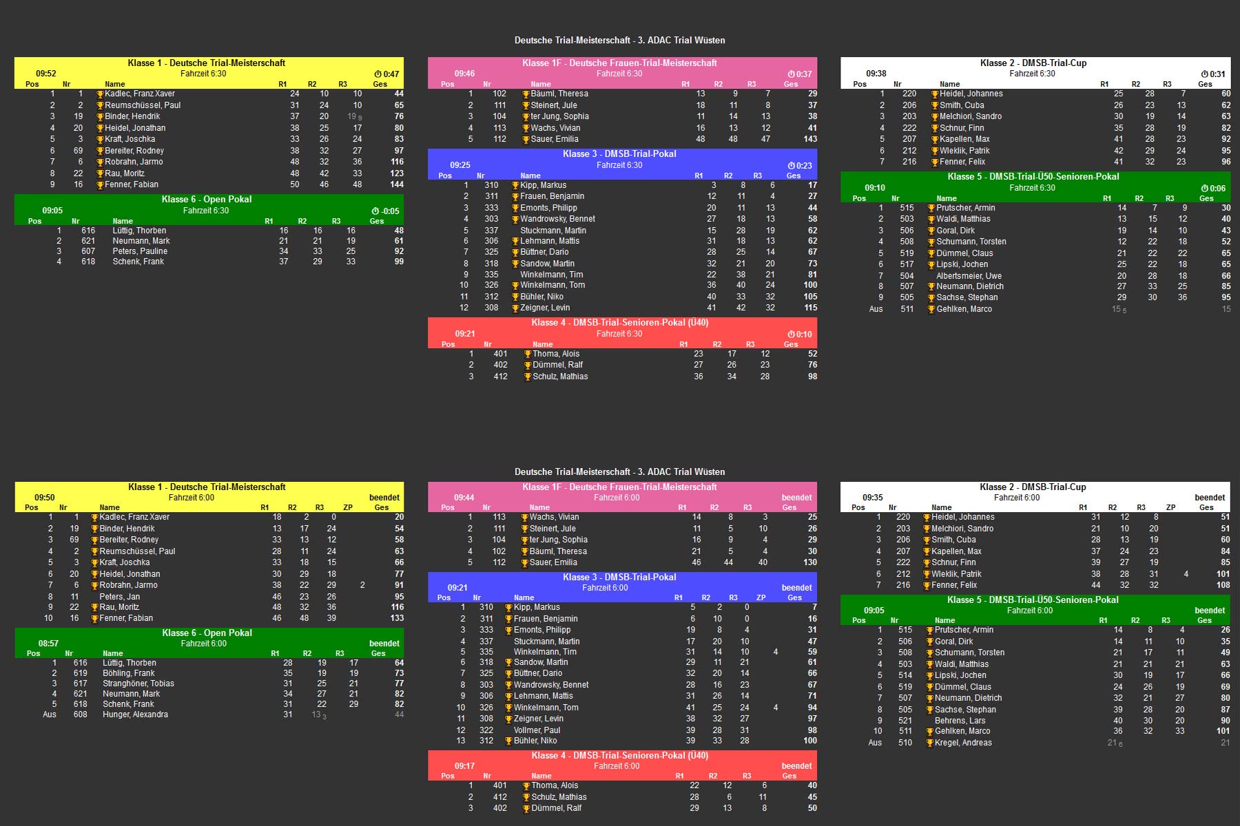 Für das Thoma-Trial-Team war es ein sehr erfolgreiches Wochenende beim 6. + 7. Lauf zur Deutschen Trial-Meisterschaft 2023. Alois Thoma stand zweimal ganz oben auf dem Podium. Theresa Bäuml konnte Sonntag gewinnen, am Samstag belegte sie den 4. Platz.