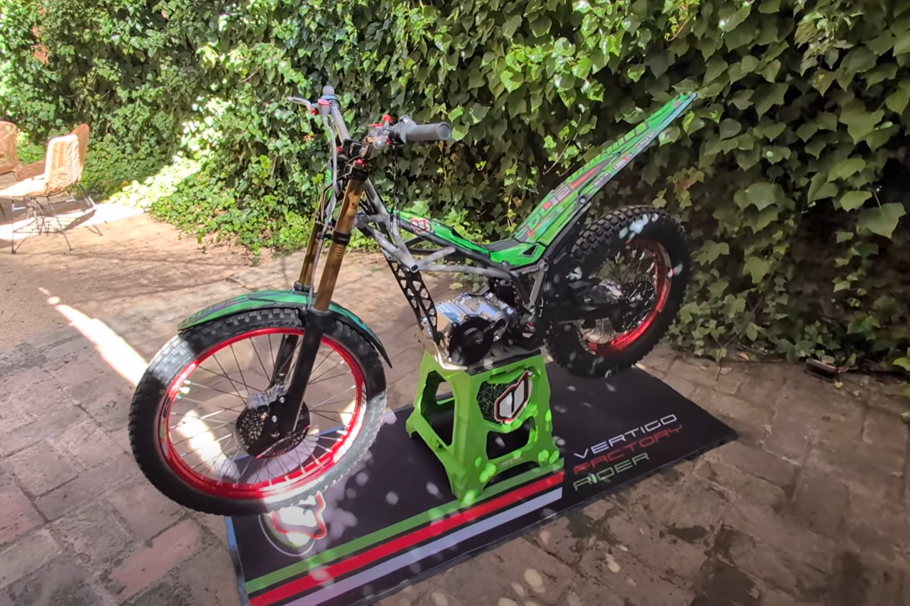 Den Test machte Francesc Llort „Siscu “, dem Chefmechaniker der Marke und einer Schlüsselfigur in der technischen Entwicklung von Vertigo. Es ist kein Zufall, dass Siscu selbst die ersten Tests durchführt. Seine Erfahrung in der Entwicklung der Vertigo-Motorräder mit Verbrennungsmotor und sein tiefes Verständnis für die Leistungsanforderungen von Spitzenfahrern bilden eine solide Grundlage, bevor der Prototyp an professionelle Trialfahrer übergeben wird.