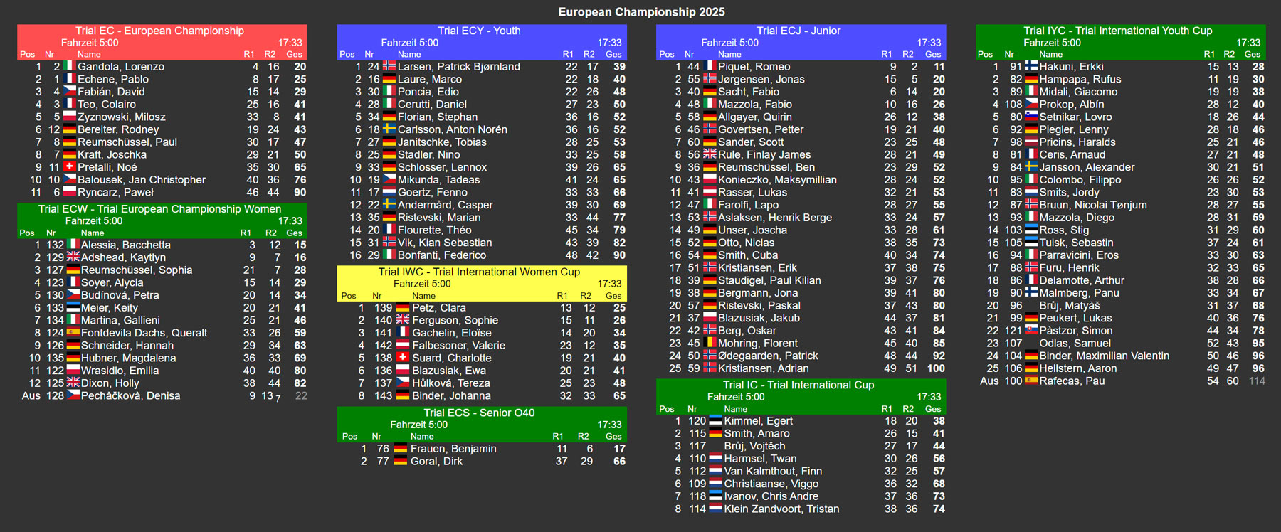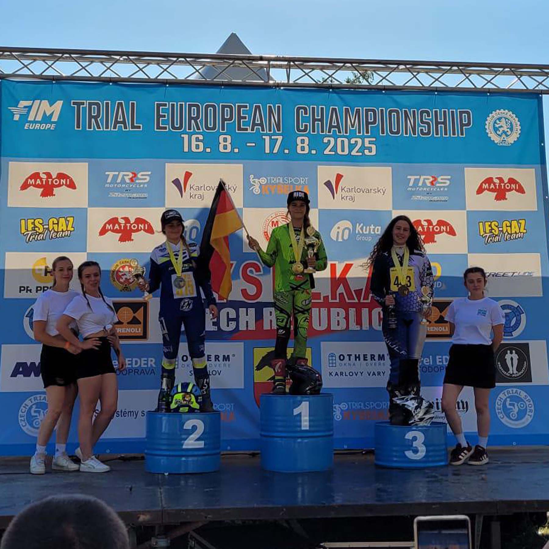 Glückwunsch Clara Petz zu 2 Siegen und Rufus Hampapa zum 2. und 3. Platz, Magdalena Hubner zum 9. und 10. Platz , Peukert, Lukas 2 mal 21. Platz bei der FIM Europe Trial European Championship in Kyselka (Tschechien).