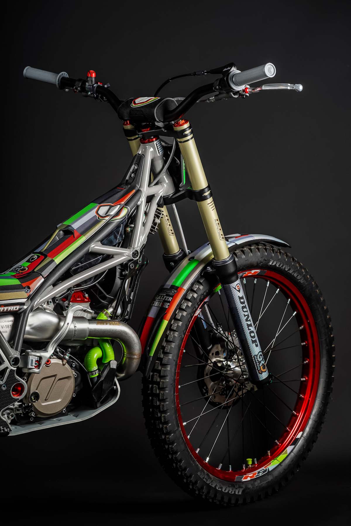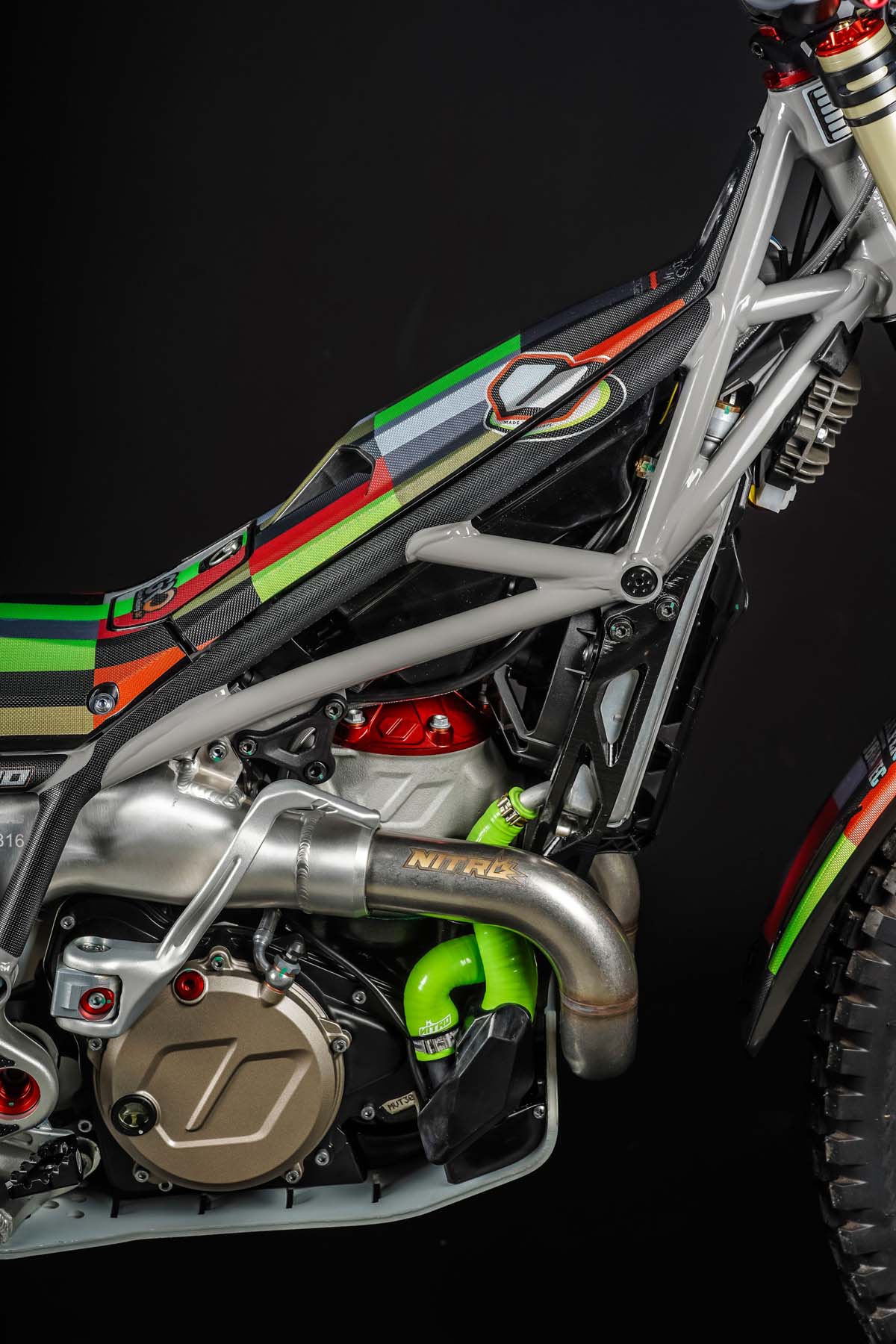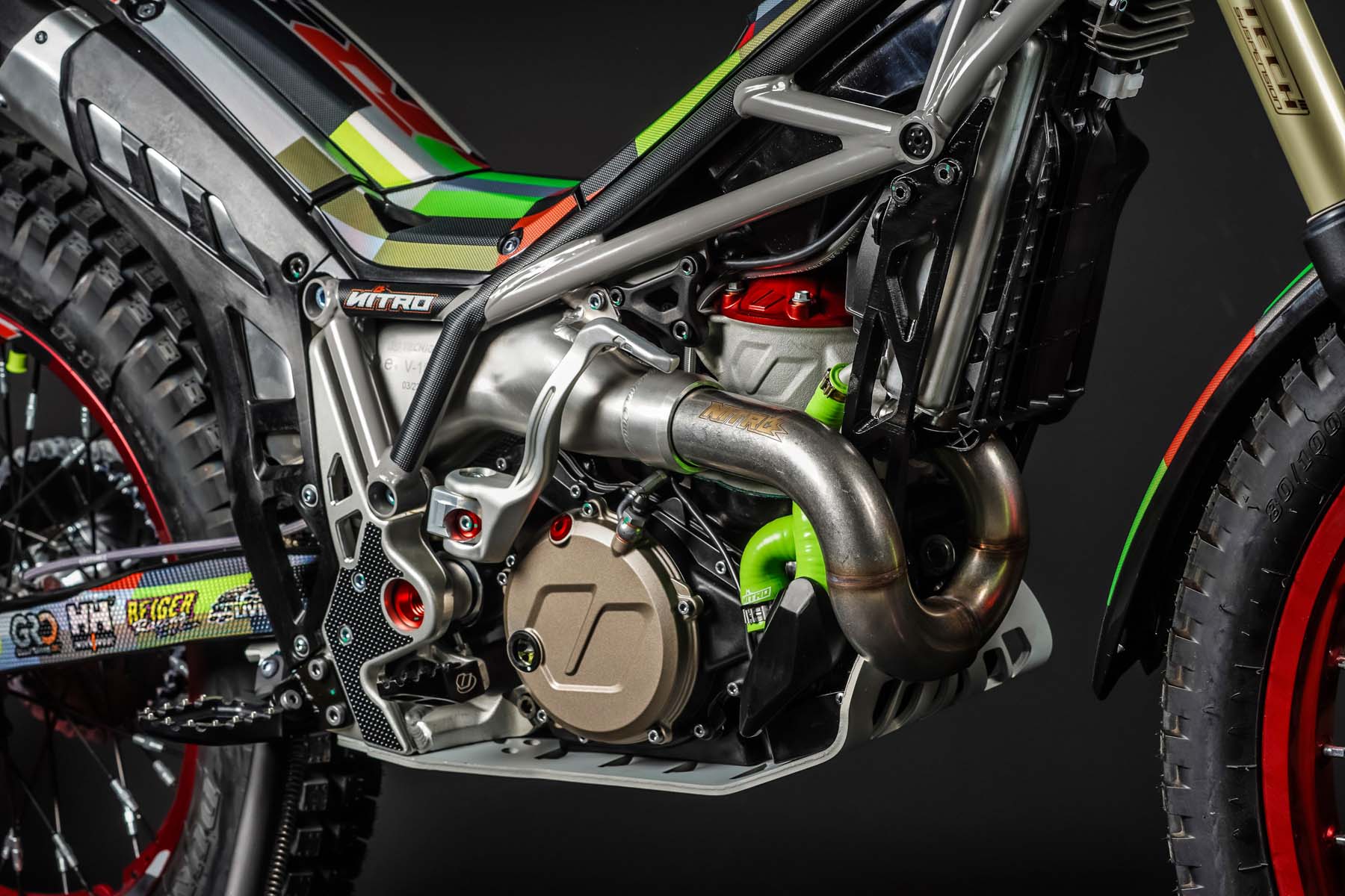 Der neue Nitro RS2 bietet mehrere neue Funktionen, die im härtesten Wettbewerb entwickelt wurden, wie z. B. den anspruchsvollsten Langzeittests, dem Six Days of Scotland Trial, dem Scott Trial, den Three Dies of Santigosa, alle mit Siegen für Vertigo-Fahrer, oder den anderen Veranstaltungen der TrialGP- und X-Trial-Weltmeisterschaft, an denen Vertigo Motors in der Saison 2023 teilgenommen hat.