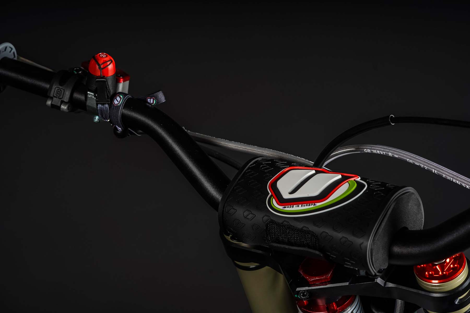 All dies zusätzlich zu den neuen Funktionen des Vorgängermodells: das von Vertigo entwickelte Verbindungssystem , die Bremsspitze aus bearbeitetem Aluminium, die Fußrasten und der 6-mm-Kurbelgehäuseschutz, die rot eloxierten Felgen und die in Silber bearbeiteten Naben.
